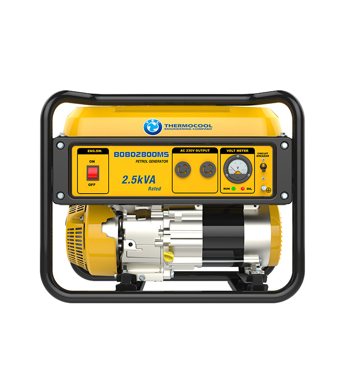 Bobo 2800MS. 25kVA/2kW. Single phase petrol generator. 4 stroke, OHV, forced air cooled, manual start, 196cc single cylinder engine. Suitable for small loads. E.g. lightings, TV, Fans and small fridge