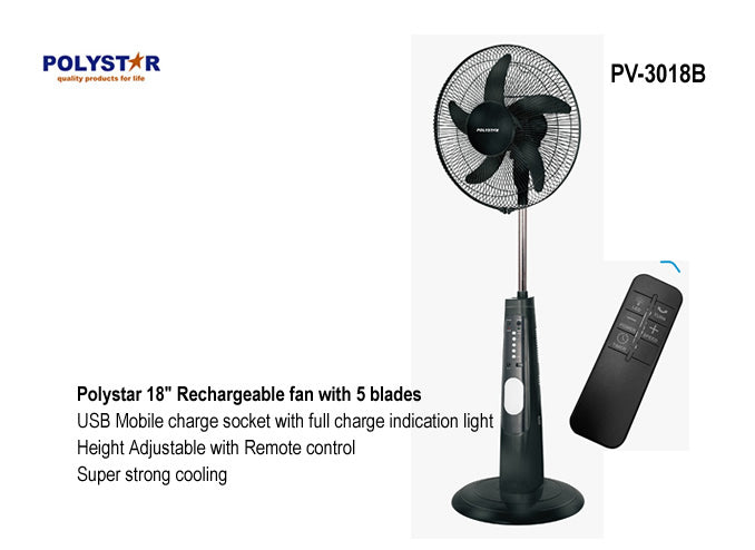 Polystar 18 inches Rechargeable Fan PV-3018B USB